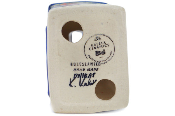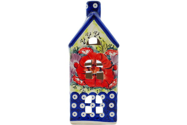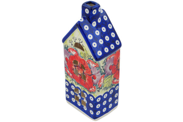 This Polish Pottery 8" House Shaped Candle Holder - Blue Eyes Bouquet is handmade and handpainted by the Kaleta Ceramics factory in Boleslawiec, Poland.