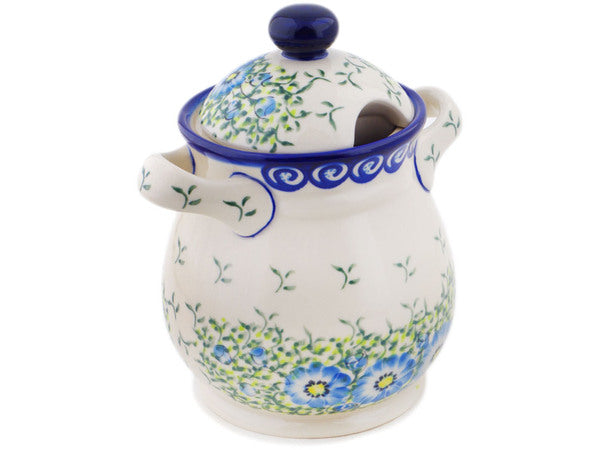 This Polish Pottery 8" Jar with Lid and Handles - Gorgeous Morning Glory is handmade and handpainted by the Ceramika Bona factory in Boleslawiec, Poland.