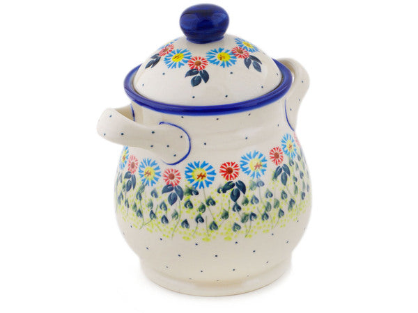 This Polish Pottery 8" Jar with Lid and Handles - Long-stemmed Beauties is handmade and handpainted by the Ceramika Bona factory in Boleslawiec, Poland.