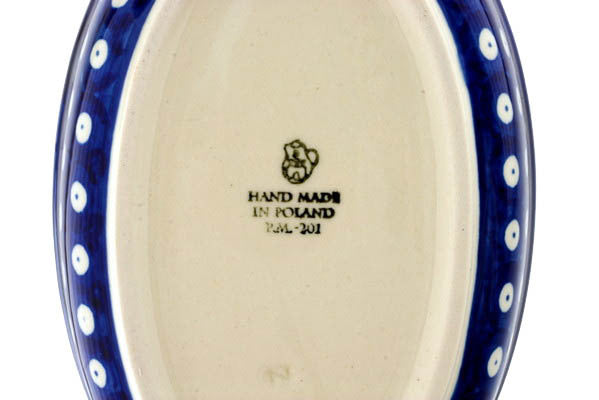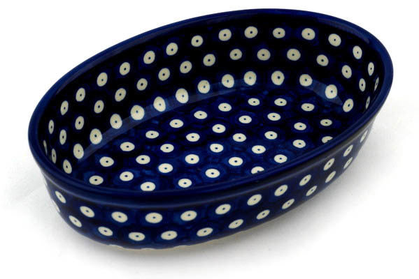 This Polish Pottery 8" Oval Baker - Blue Eyes is handmade and handpainted by the Ceramika Artystyczna factory in Boleslawiec, Poland.