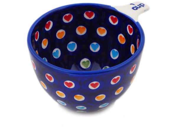 This Polish Pottery 8 oz Measuring Cup - Heart Disco is handmade and handpainted by the Manufaktura factory in Boleslawiec, Poland.