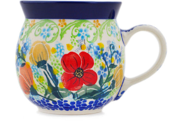 This Polish Pottery 8 oz Bubble Mug - Blooming Joy is handmade and handpainted by the Ceramika Artystyczna factory in Boleslawiec, Poland.