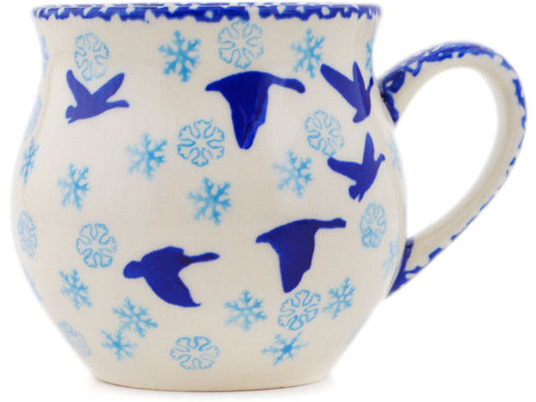 This Polish Pottery 8 oz Bubble Mug - Snowy Flight is handmade and handpainted by the Ceramika Bona factory in Boleslawiec, Poland.
