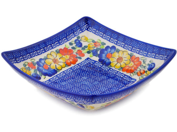 This Polish Pottery 8" Square Bowl - Fall Garden is handmade and handpainted by the Ceramika Bona factory in Boleslawiec, Poland.