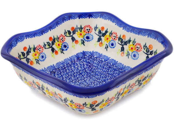 This Polish Pottery 8" Square Bowl - Pastel Spring Wreath is handmade and handpainted by the Ceramika Bona factory in Boleslawiec, Poland.