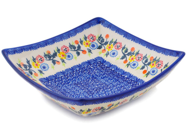This Polish Pottery 8" Square Bowl - Pastel Spring Wreath is handmade and handpainted by the Ceramika Bona factory in Boleslawiec, Poland.