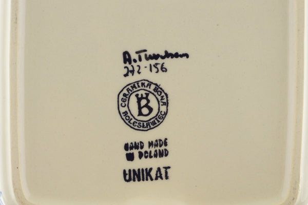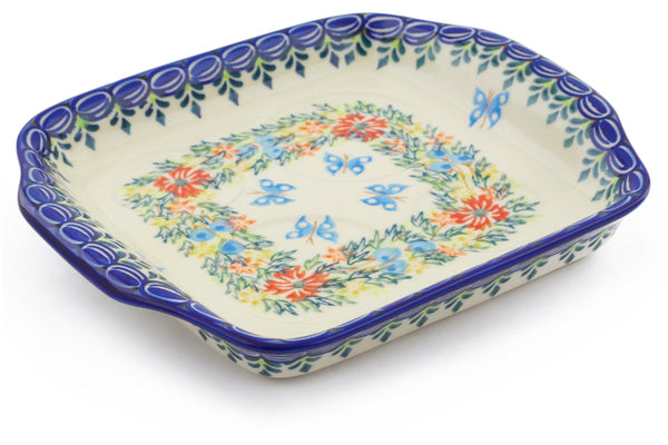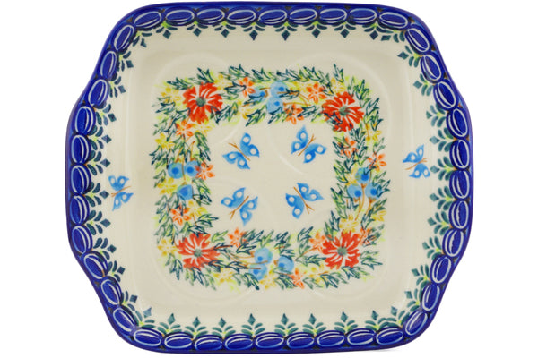 This Polish Pottery 8" Tray with Handles - Ring Of Flowers is handmade and handpainted by the Ceramika Bona factory in Boleslawiec, Poland.