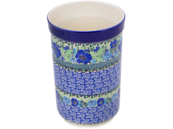 This Polish Pottery 8" Utensil Jar - Moody Blues is handmade and handpainted by the Ceramika Artystyczna factory in Boleslawiec, Poland.