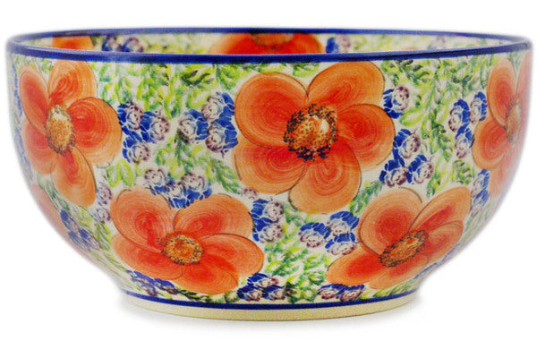 This Polish Pottery 9" Bowl - Sunrise Petals is handmade and handpainted by the Kaleta Ceramics factory in Boleslawiec, Poland.