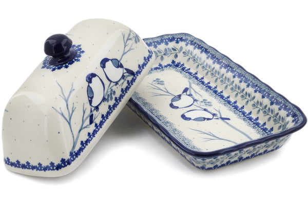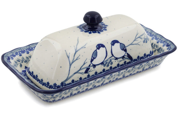 This Polish Pottery 9" Butter Dish - Waiting Birds is handmade and handpainted by the Ceramika Artystyczna factory in Boleslawiec, Poland.