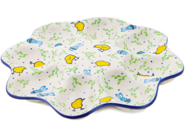 This Polish Pottery 9" Egg Plate - Easter Day is handmade and handpainted by the Ceramika Artystyczna factory in Boleslawiec, Poland.