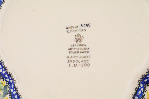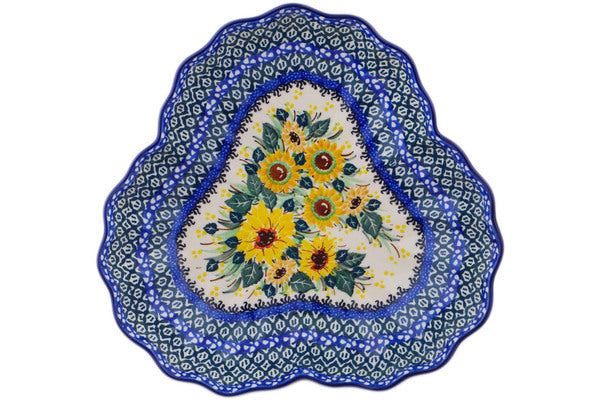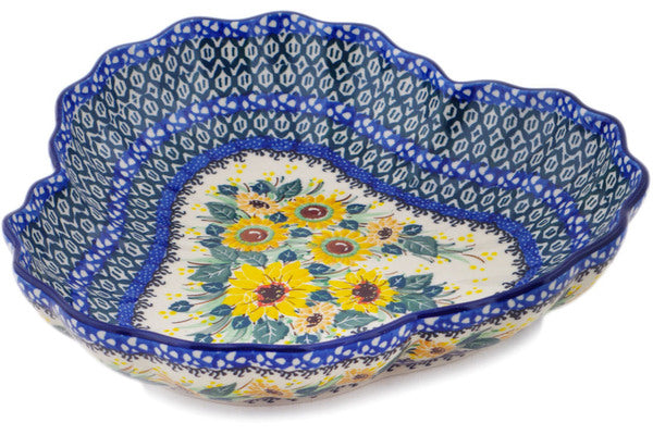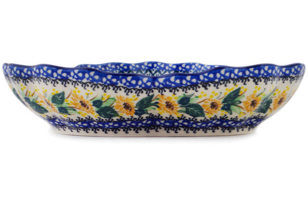 This Polish Pottery 9" Fluted Bowl - Sunflowers At Sunset is handmade and handpainted by the Ceramika Artystyczna factory in Boleslawiec, Poland.
