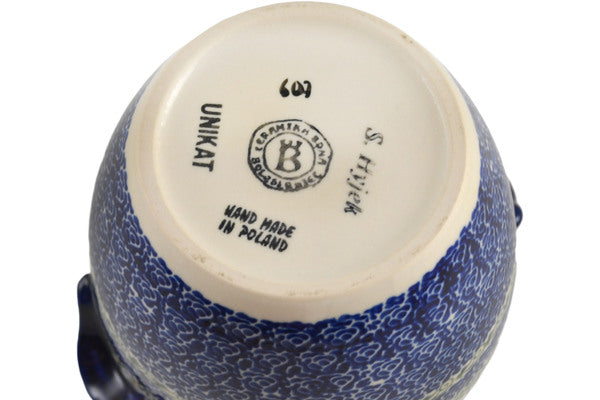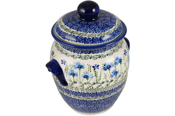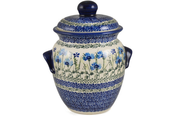 This Polish Pottery 9" Jar with Lid and Handles - Fresh Flora is handmade and handpainted by the Ceramika Bona factory in Boleslawiec, Poland.