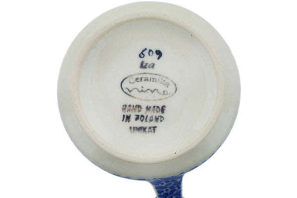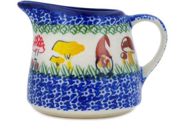 This Polish Pottery 9 oz Pitcher - Mushroom Garden is handmade and handpainted by the Ceramika Nina factory in Boleslawiec, Poland.
