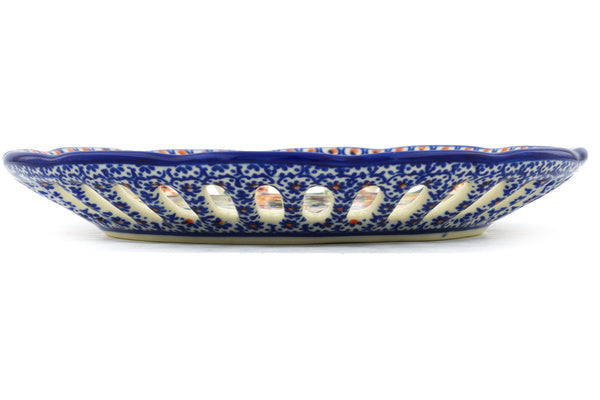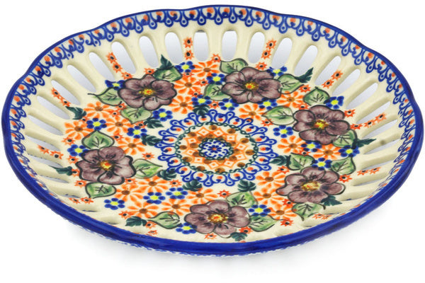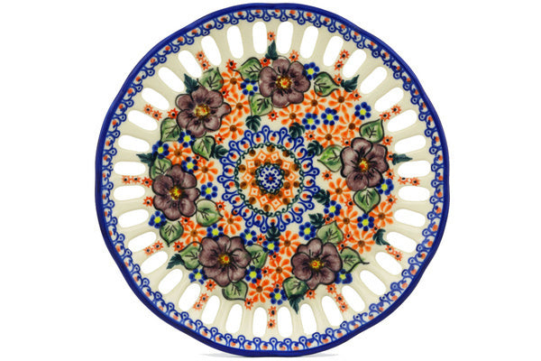 This Polish Pottery 9" Plate with Holes - Mauve Poppies is handmade and handpainted by the Ceramika Bona factory in Boleslawiec, Poland.