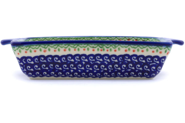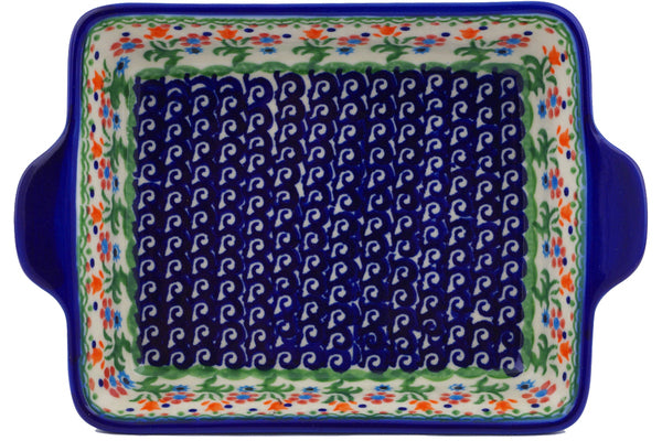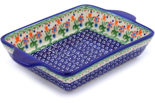 This Polish Pottery 9" Rectangular Baker with Handles - Spring Flowers is handmade and handpainted by the Ceramika Bona factory in Boleslawiec, Poland.