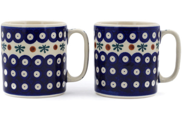 This Polish Pottery 24 oz Set of 2 Mugs - Mosquito is handmade and handpainted by the Ceramika Bona factory in Boleslawiec, Poland.