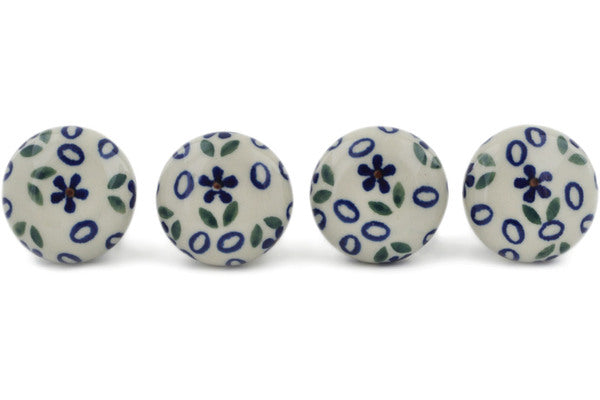 This Polish Pottery 1" Set of 4 Drawer Pull Knobs - Daisy Sprinkles is handmade and handpainted by the Ceramika Artystyczna factory in Boleslawiec, Poland.