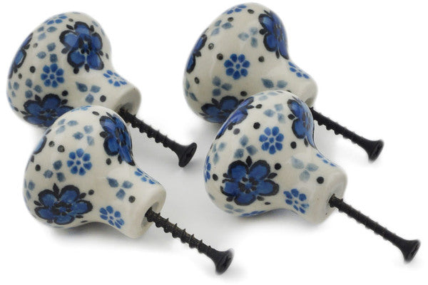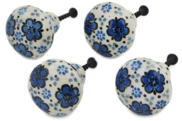This Polish Pottery 1" Set of 4 Drawer Pull Knobs - Flowing Blues is handmade and handpainted by the Ceramika Artystyczna factory in Boleslawiec, Poland.