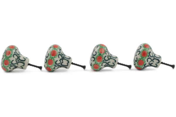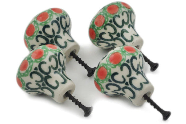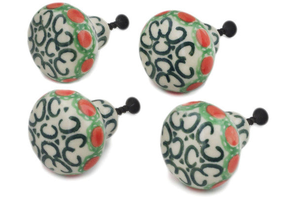 This Polish Pottery 1" Set of 4 Drawer Pull Knobs - Indian Trail is handmade and handpainted by the Ceramika Artystyczna factory in Boleslawiec, Poland.
