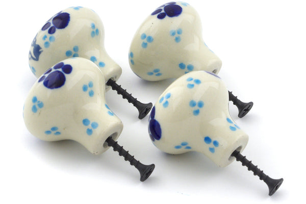 This Polish Pottery 1" Set of 4 Drawer Pull Knobs - Kitty Love is handmade and handpainted by the Ceramika Artystyczna factory in Boleslawiec, Poland.