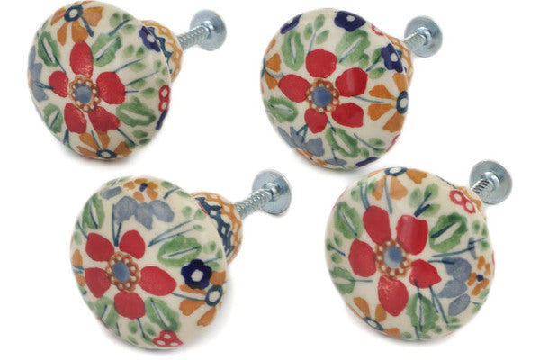Set of 4 Drawer Pull Knobs 1-1/2 inch - Ruby Bouquet