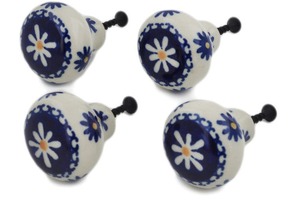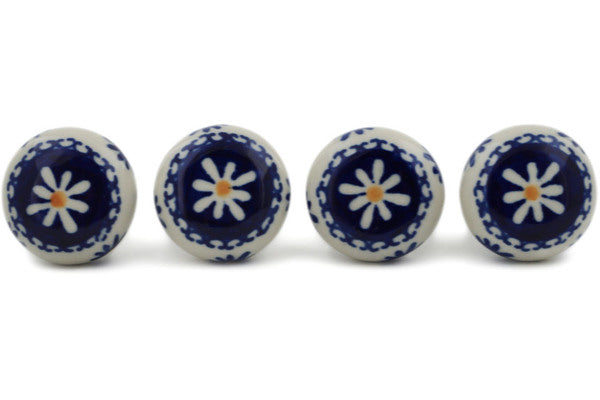 This Polish Pottery 1" Set of 4 Drawer Pull Knobs - Sweet Daisy is handmade and handpainted by the Ceramika Artystyczna factory in Boleslawiec, Poland.