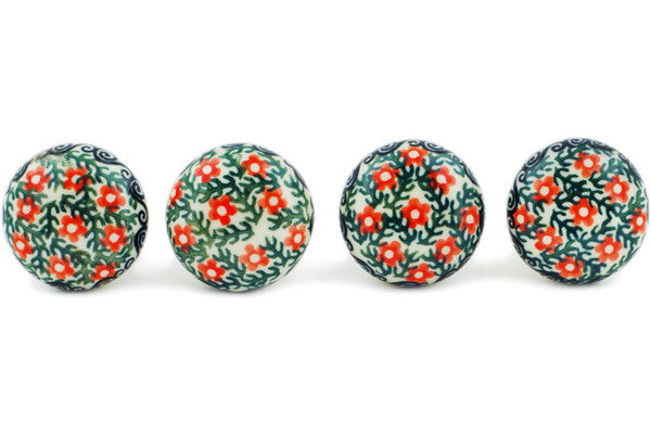 This Polish Pottery 1" Set of 4 Drawer Pull Knobs - Country Wildflower is handmade and handpainted by the Ceramika Artystyczna factory in Boleslawiec, Poland.