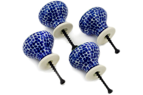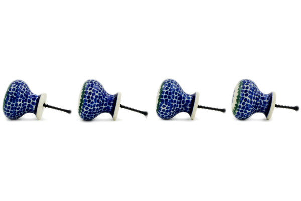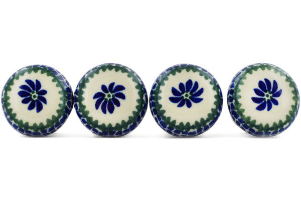 This Polish Pottery 1" Set of 4 Drawer Pull Knobs - Polka Dot Daisy is handmade and handpainted by the Ceramika Artystyczna factory in Boleslawiec, Poland.