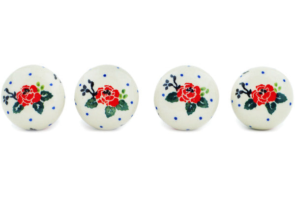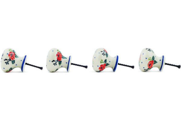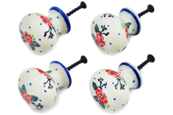 This Polish Pottery 1" Set of 4 Drawer Pull Knobs - Wild Rose is handmade and handpainted by the Ceramika Artystyczna factory in Boleslawiec, Poland.