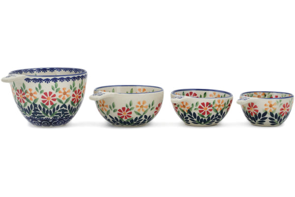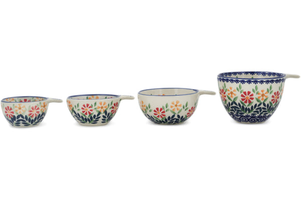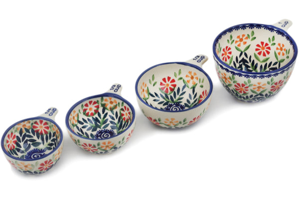 This Polish Pottery 8 oz Set of 4 Measuring Cups - Wave Of Flowers is handmade and handpainted by the Manufaktura factory in Boleslawiec, Poland.