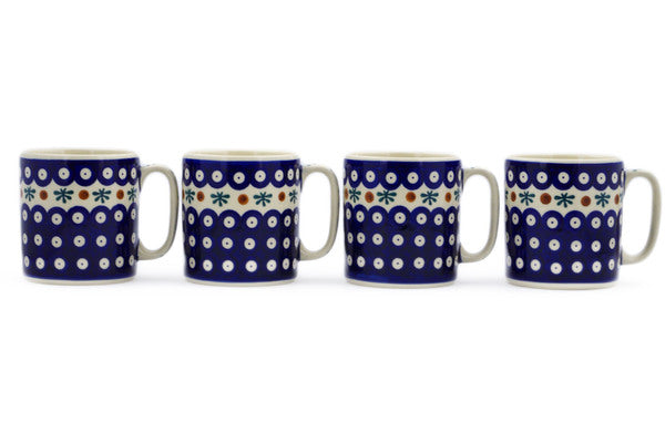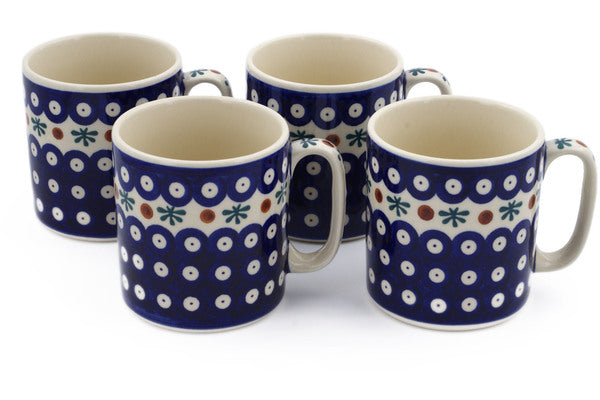 This Polish Pottery 12 oz Set of 4 Mugs - Mosquito is handmade and handpainted by the Ceramika Bona factory in Boleslawiec, Poland.