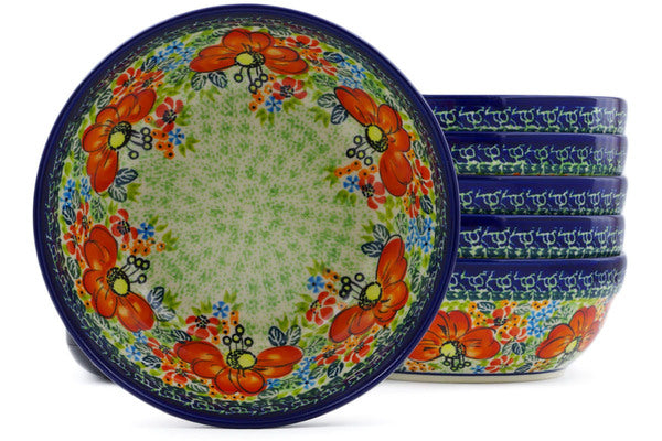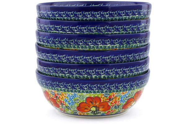 This Polish Pottery 7" Set of 6 Bowls - Garden Meadow is handmade and handpainted by the Zaklady Ceramiczne factory in Boleslawiec, Poland.