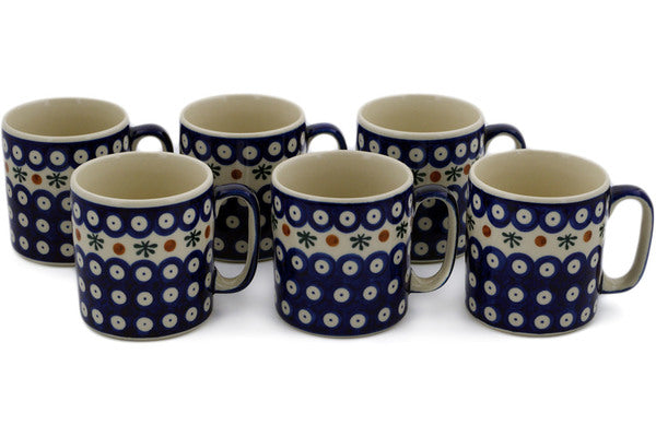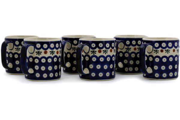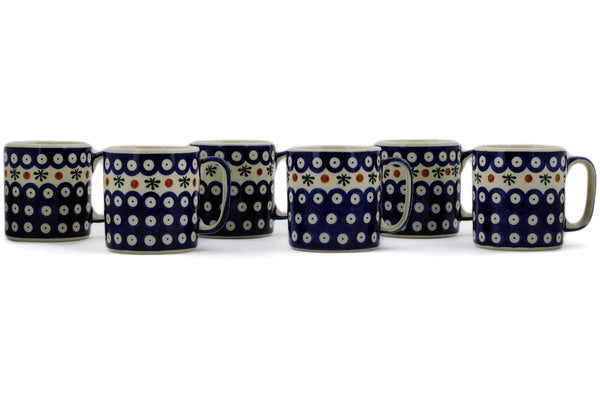 This Polish Pottery 12 oz Set of 6 Mugs - Mosquito is handmade and handpainted by the Ceramika Bona factory in Boleslawiec, Poland.