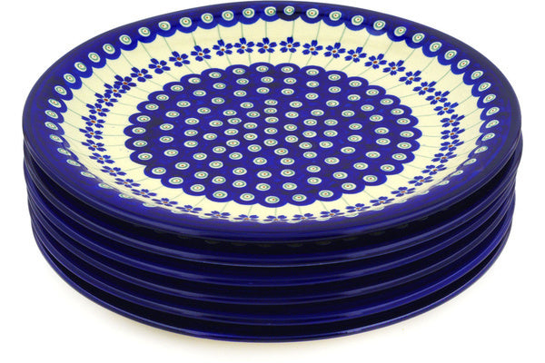 This Polish Pottery 11" Set of 6 Plates - Flowering Peacock is handmade and handpainted by the Zaklady Ceramiczne factory in Boleslawiec, Poland.