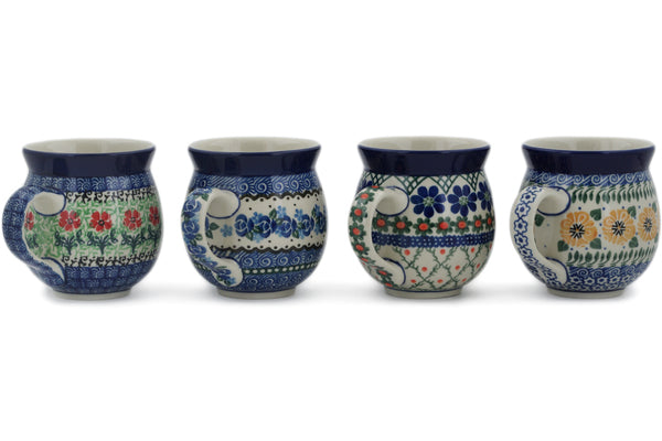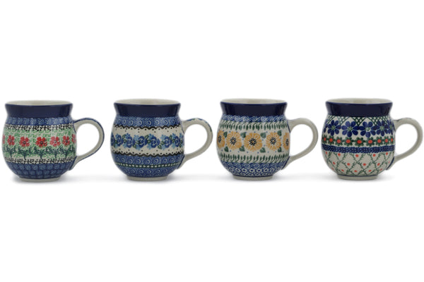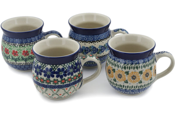 This Polish Pottery 12 oz Set of 4 Mugs - Mix is handmade and handpainted by the Ceramika Artystyczna factory in Boleslawiec, Poland.