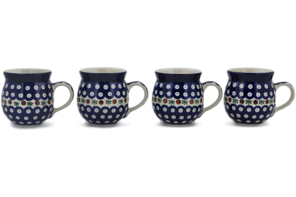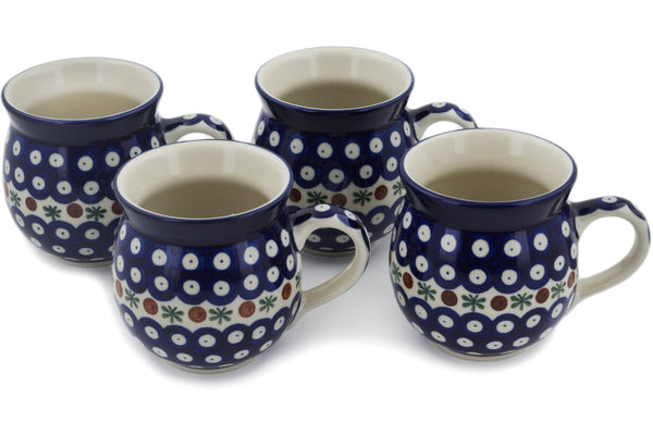 This Polish Pottery 12 oz Set of 4 Mugs - Mosquito is handmade and handpainted by the Ceramika Artystyczna factory in Boleslawiec, Poland.