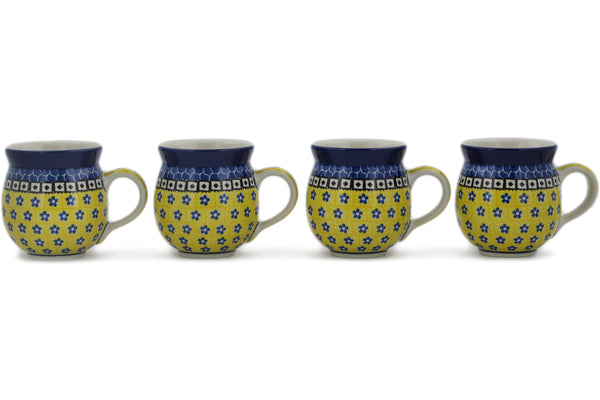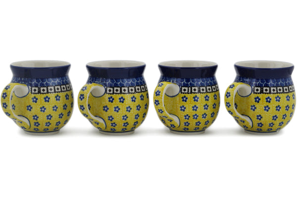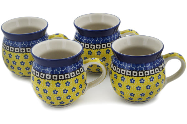 This Polish Pottery 12 oz Set of 4 Mugs - Sunburst Daisies is handmade and handpainted by the Ceramika Artystyczna factory in Boleslawiec, Poland.